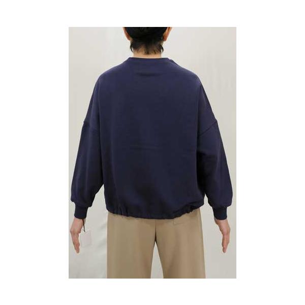 綿裏毛丸首MARIEテープ風刺繍ワイドボディ裾ドロストカットソー