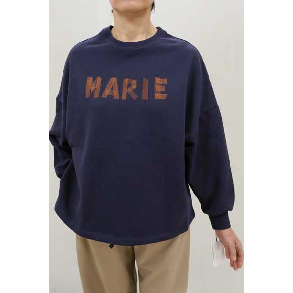 春夏物【マリードール/年間物/14128】綿裏毛リブ丸首MARIEテープ風刺繍ワイドボディ裾ドロストドロップ長袖/MARIE/spp/5i56b511xx