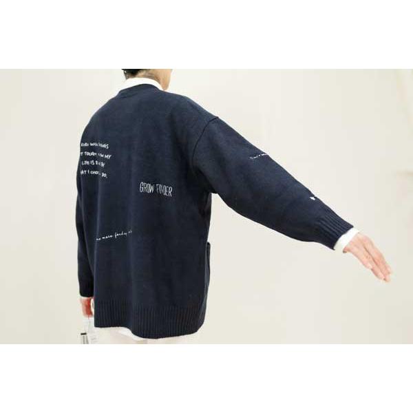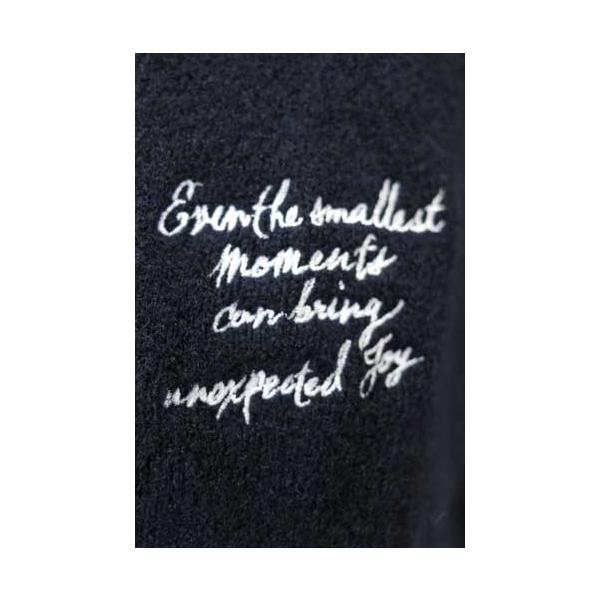 80256571/アクリル・ポリエステル・ナイロン・毛ストレッチミドルゲージニット、Vネックリラックスカーディガン、左胸には「D」のワッペン、身頃と袖には筆記体の英字ロゴが刺繍されています。肩周りがゆったりしたドロップショルダーにワイドスリーブ、袖口と裾周りはリブニット編地切替で緩くシェイプした、軽いコクーンシルエットのヒップカバー丈です。大きな「D」のワッペンがアメカジっぽいカーディガン、カットソーでは叶えられない贅沢な雰囲気の大人のカジュアルカーディガンです。メーカーリコメンド/刺繍ニットカーディガン。着用モデルコメント/ゆったりしたサイズ感のワッペンと刺繍入りでカジュアルに着られるVカーディガン。冬最後の展示会発注で人気集中したシリーズです。■同じモチーフの丸首セーターは80256570。