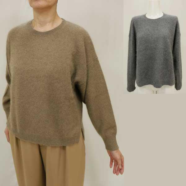 秋冬SALE【マリアプラス/153705/40%OFF】ラクーン×シルク天竺+リブ丸首ワイドボディバックロングヒップ丈ベーシックセーター/sps/4i41b521xx