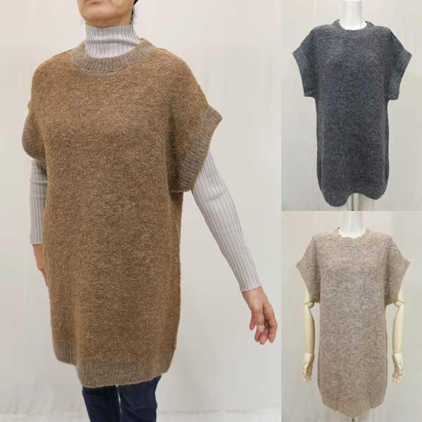 秋冬SALE【ガノッシュ/237-10725/50%OFF】ポリアクリル毛ブークレーリブパイピング丸首ロングチュニックフレンチベスト/Ganosch/sph/4i44b291xx