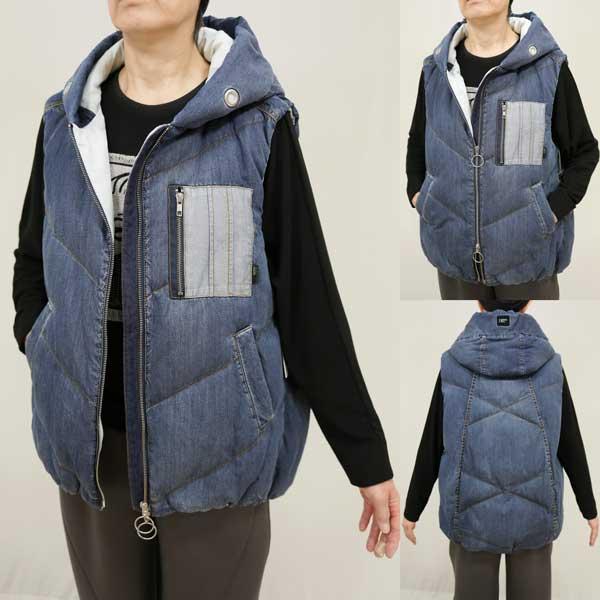 秋冬SALE【アヤン/875823/40%OFF】綿ポリダンガリーフードジップ配色貼りポケリラックスコクーンダウンベスト/ayane/sps/1i14b751xx