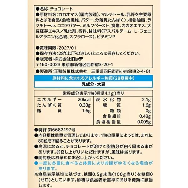 満足感のあるキューブ形状の品質が標準80粒入り。いつでも美味しいゼロチョコレートを楽しむことができます。