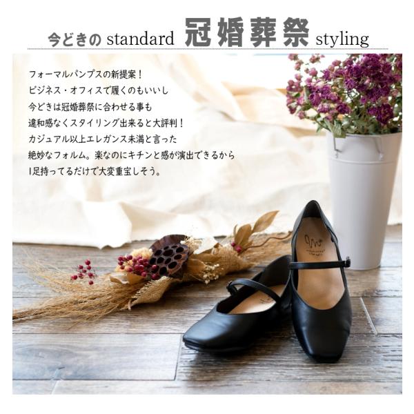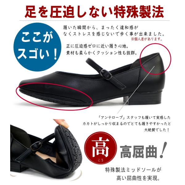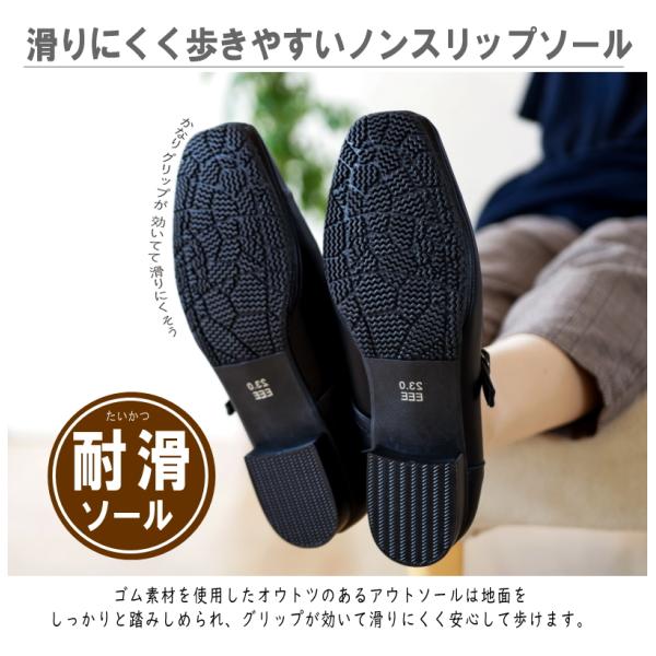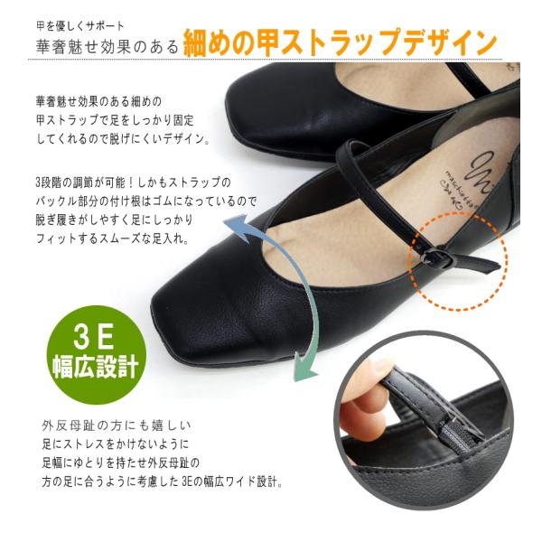 スクエアパンプス 甲ストラップ ローヒール 3e 耐滑 屈曲 耐滑