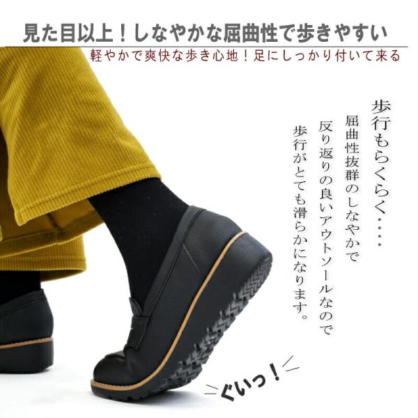【足に優しくて軽い】Pansy パンジー ローファーシューズ 靴 レディース 軽量 コンフォート ウエッジソール フェイクレザー 柔らかい 抗菌 防臭 歩きやすい