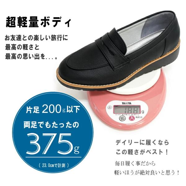 ローファーシューズ コイン コンフォート 軽量 ウエッジ 3e