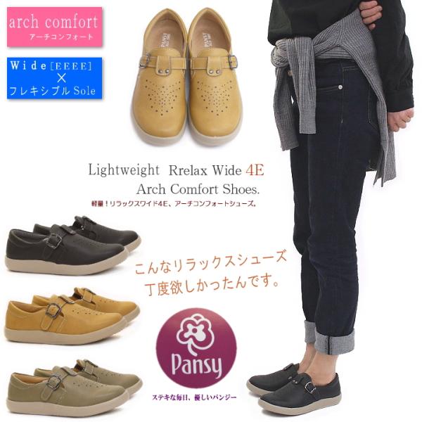 pansy パンジーシューズ 靴 レディース コンフォート 幅広(4EEEE) ラウンドトゥ シューズ