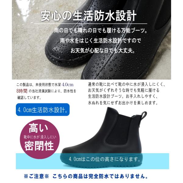レインブーツ サイドゴア ショート 生活防水 抗菌 防臭 軽量 3e