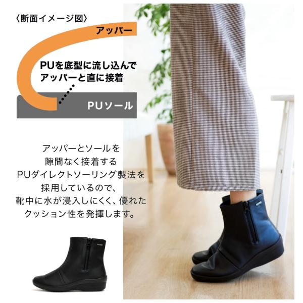 パンジー Pansy ショートブーツ レディース サイドゴア ファスナー 生活防水 撥水 抗菌 防臭 防滑 滑りにくい 軽量 3e スクエアトゥ ウエッジソール 屈曲
