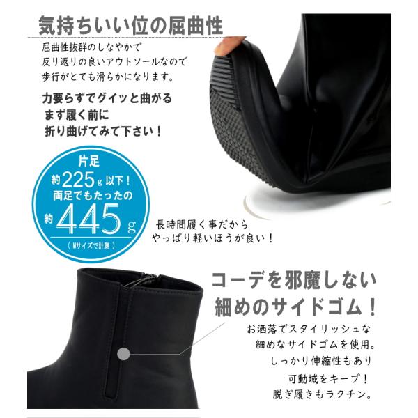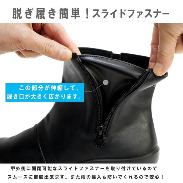 ショートブーツ サイドゴア ファスナー 生活防水 防滑 防臭 3e