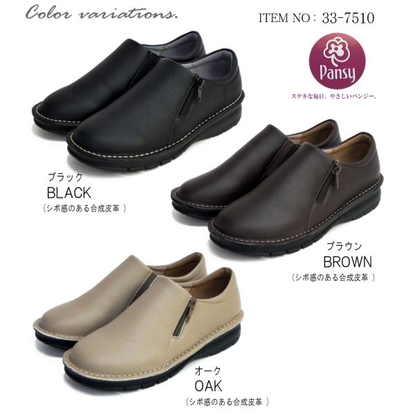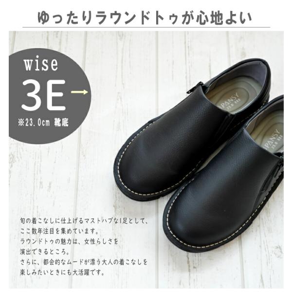【甲高幅広 脱ぎ履き楽ちん】pansy パンジー スリッポンシューズ 靴 レディース 軽量 サイドジップ フラット ラウンド 柔らかい 歩きやすい 履きやすい 旅行 3e