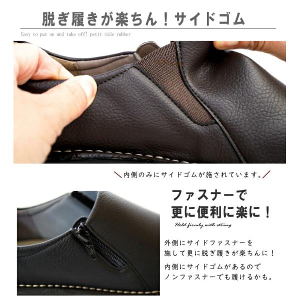 パンジー スリッポン 靴 軽量 フラット サイドジップ ゴム 3e