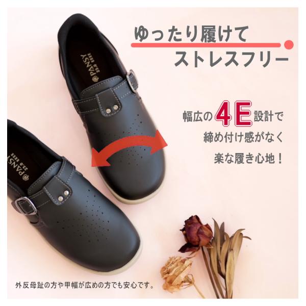 【軽くて歩きやすい/幅広4E】パンジー 靴 レディース PANSY スリッポン 軽量 手を使わずに履ける ハンズフリー フラット コンフォート ラウンド 屈曲 抗菌 防臭