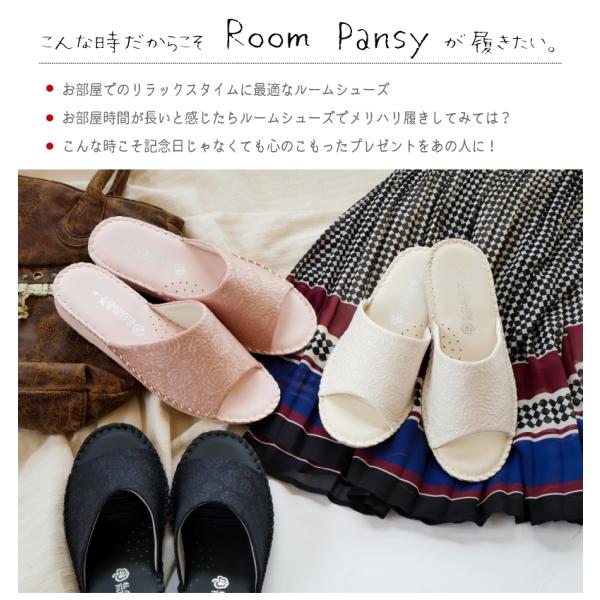 Pansy パンジー パントフォーレ スリッパ ルームシューズ レディース フラワー柄 超軽量 フラット つっかけ ミュール 巣ごもり 室内 オフィス 病院 学校 3e