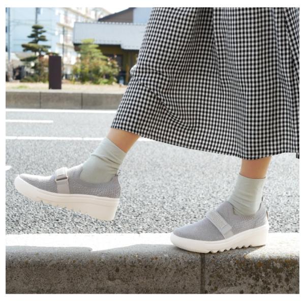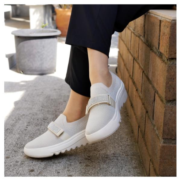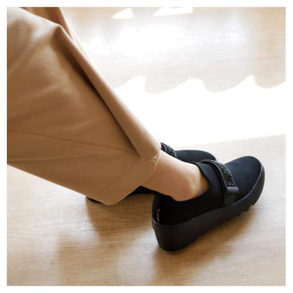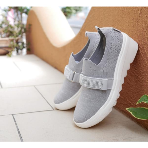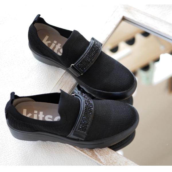 スリッポン レディース 靴 厚底 ウエッジソール ストレッチ ニット 軽量 ラメ ビジュー ラインストーン kitson キットソン 面ファスナー ベルト 3E 靴下感覚