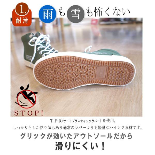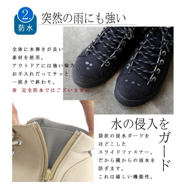 ハイカットスニーカー フラット 防水 キャンプ アウトドア 3e