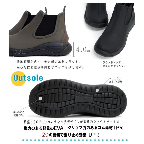 サイドゴアブーツ 防水 耐水 撥水 晴雨兼用 滑りにくい フラット