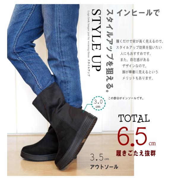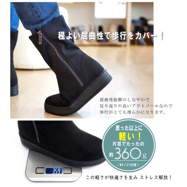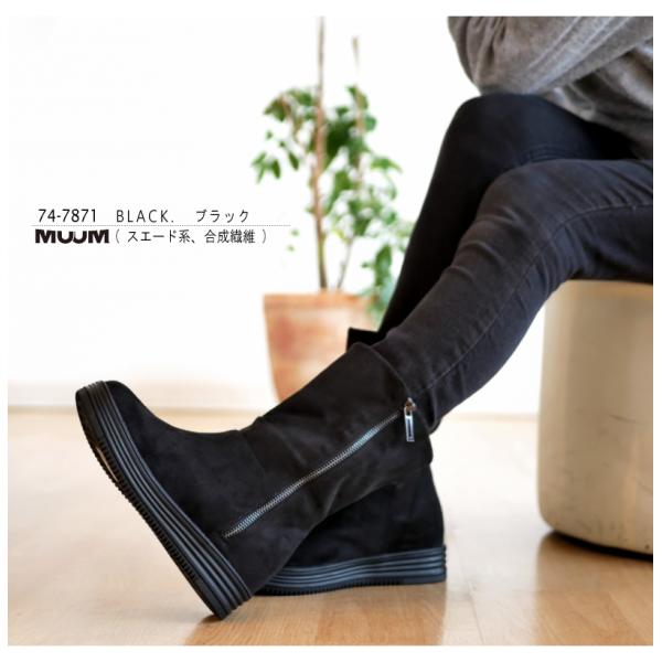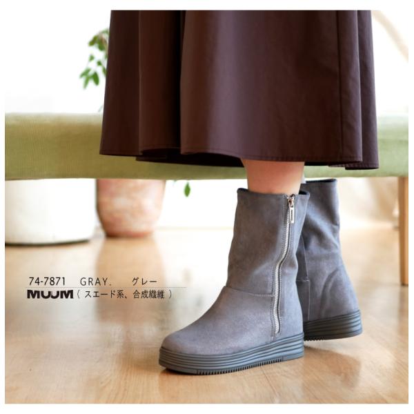 【厚底6cm/軽量/あったか】ブーツ レディース 歩きやすい 厚底 ウェッジソール インヒール 歩きやすい MUUM ムーム ミドル丈 柔らかい 3E スエード きれい目