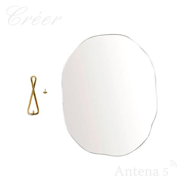 真鍮製のフックと有機的な曲線のミラー本体のセットで、壁に掛けるだけでお部屋のアクセントに。