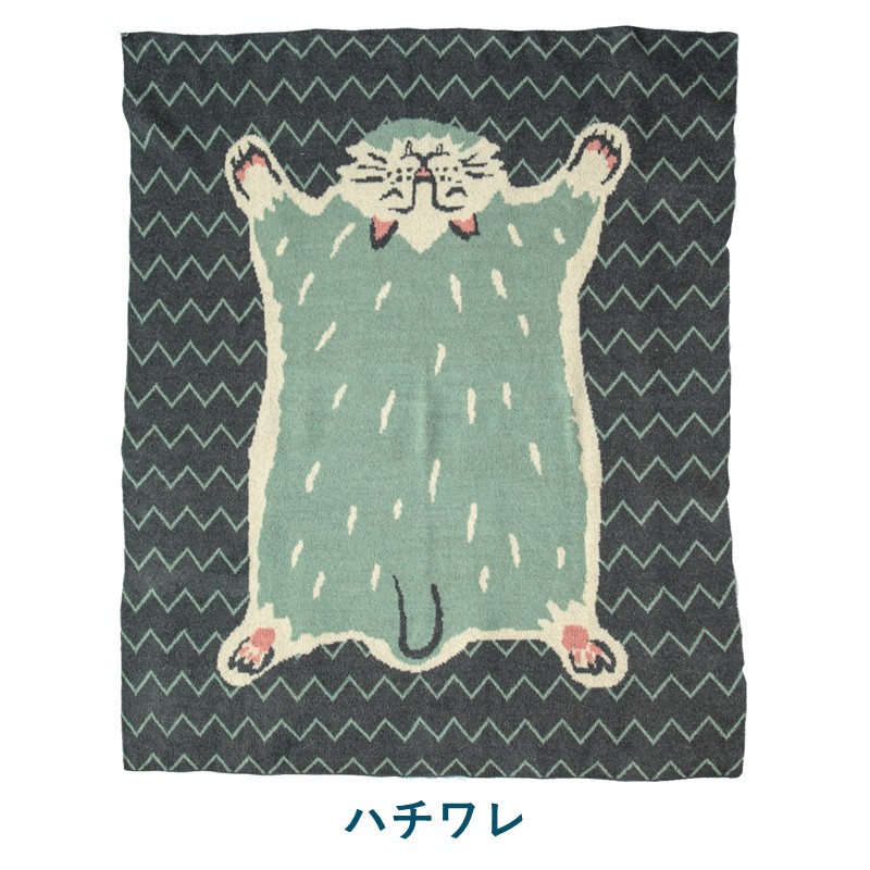 ニットブランケット【Lサイズ】 ひざ掛け 防寒 羽織り 秋冬用 フェザーニット トラ ヒョウ ハチワレ ふわふわ モチモチ】ビスク Momonga モモンガ ◇