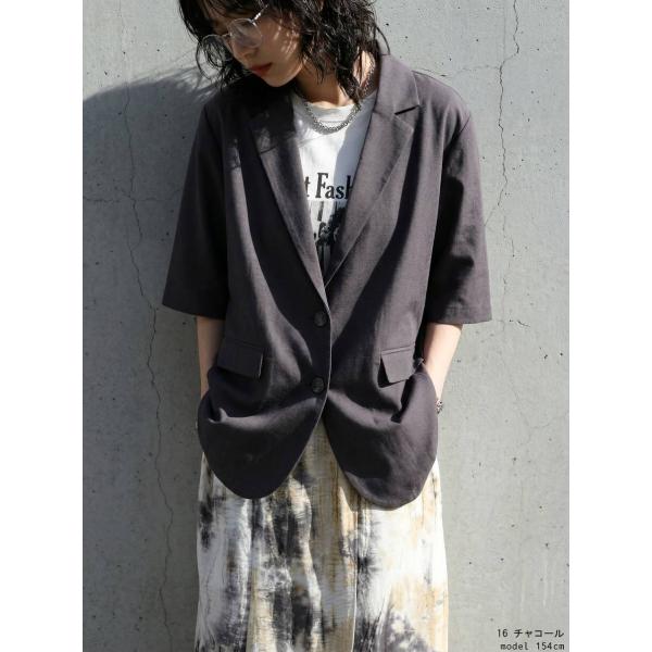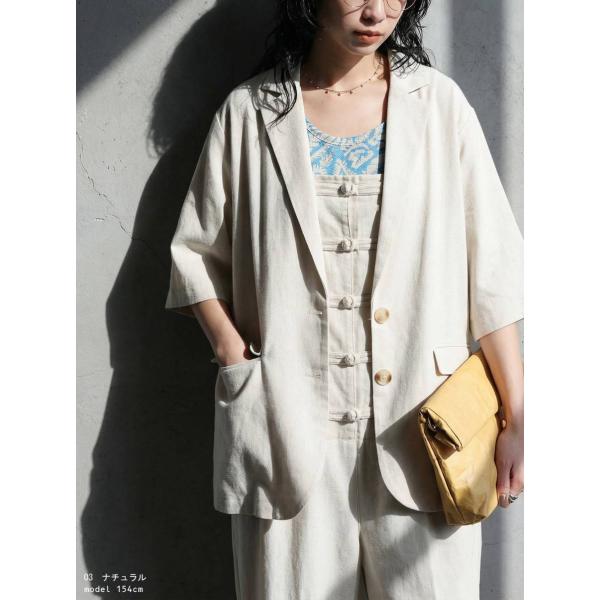 リネンジャケット レディース 半袖 テーラード 送料無料・メール便不可