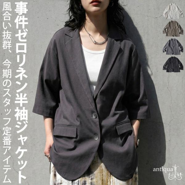 リネンジャケット レディース 半袖 テーラード 送料無料・メール便不可
