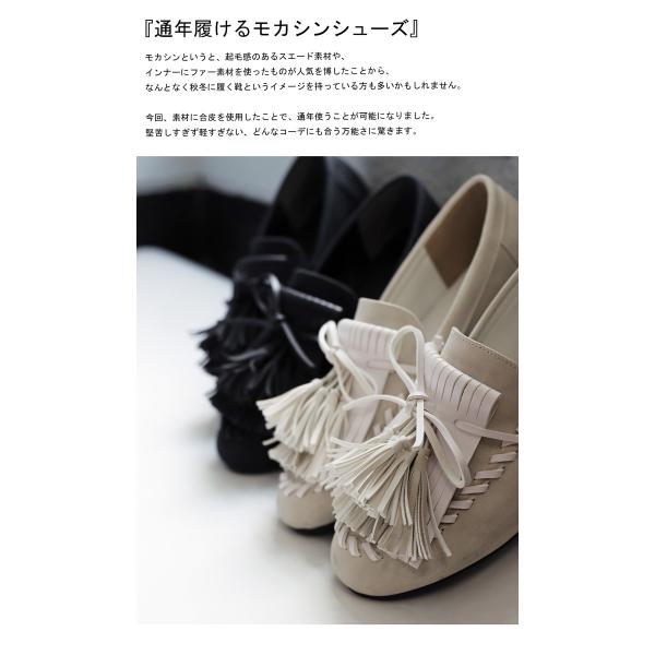 きれいめ フラット フリンジ モカシン ローファー 異素材
