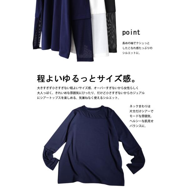 シアー 切替 トップス 長袖 綿混 カットソー ドッキング