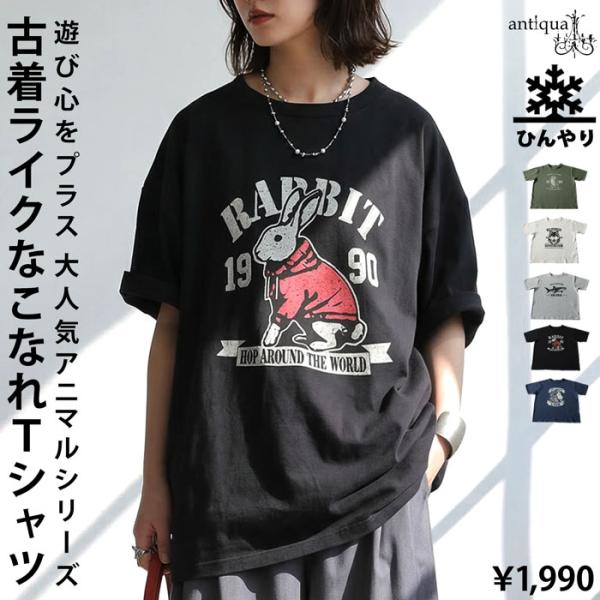 半袖 Tシャツ レディース 接触冷感 綿100 アニマル ロゴT・50ptメール便可