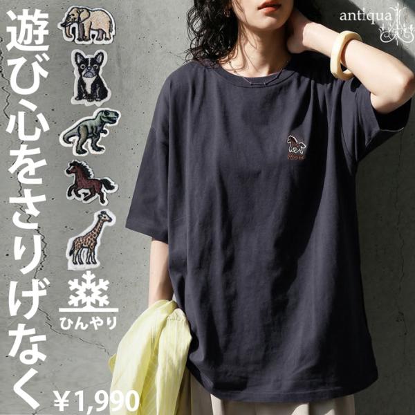 接触冷感 Tシャツ レディース 半袖 綿100% アニマル刺繍・50ptメール便可