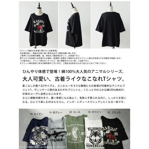 トップス 半袖Tシャツ カットソー 動物 プリント 大きめ