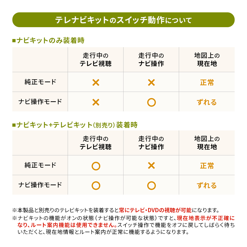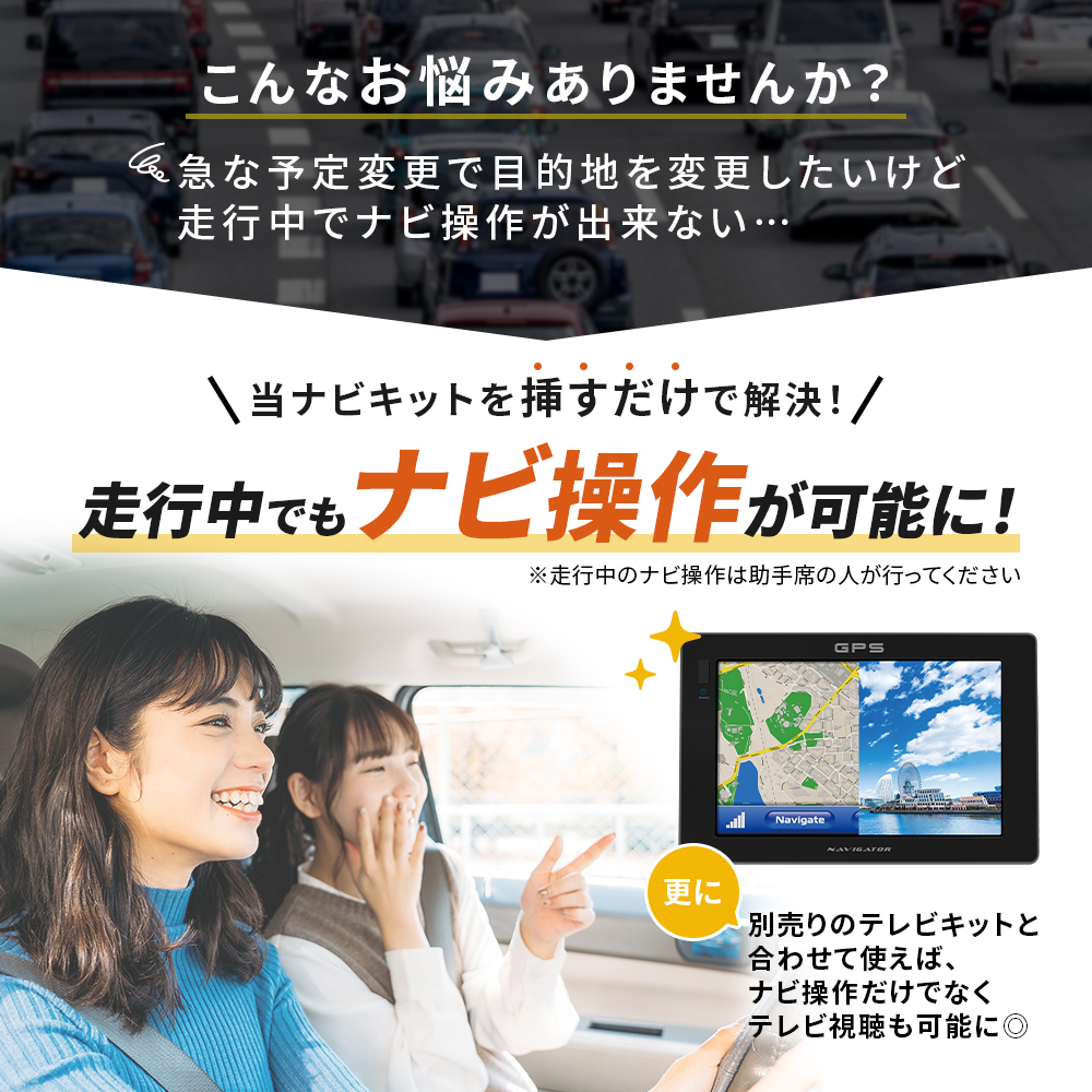 走行中のテレビ視聴を可能にしたい場合は、別途テレビキットをご購入していただく必要がございます。