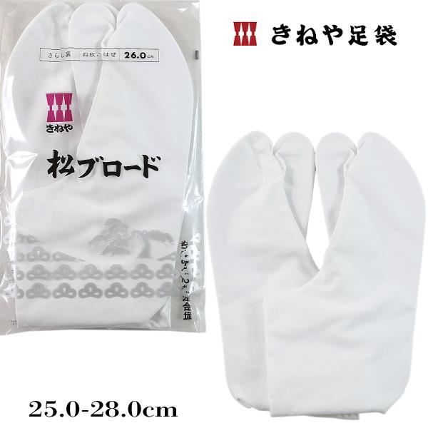 きねや足袋 松ブロード 白 綿100% 4枚こはぜ 晒裏 25.0-28.0cm