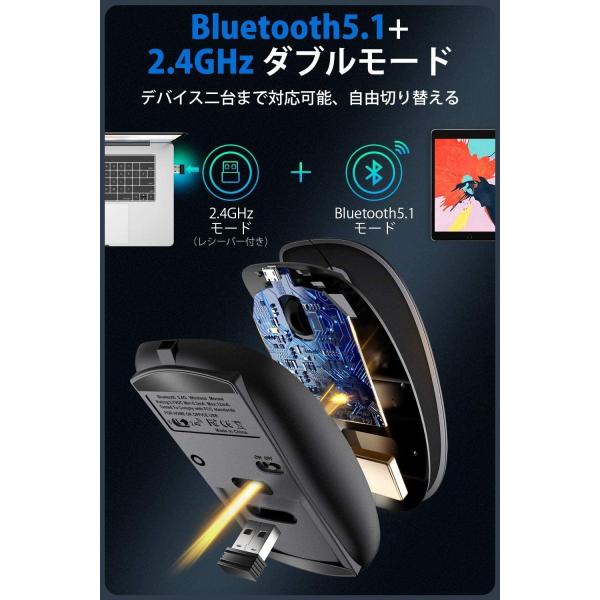 マウス 完全ワイヤレス機能 ワイヤレスマウス Bluetoothマウス Bluetooth5.1 光学式 高感度 3DPIモード Mac/Windowsなど対応 ブルートゥース