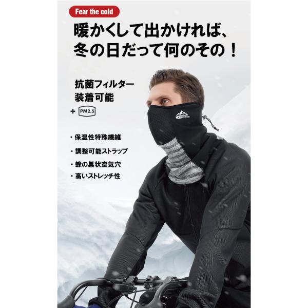 ・寒さが厳しい季節にロングタイプで顔から首筋までカバーしてくれるフェイスマスク。