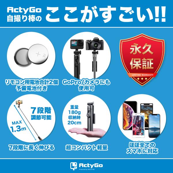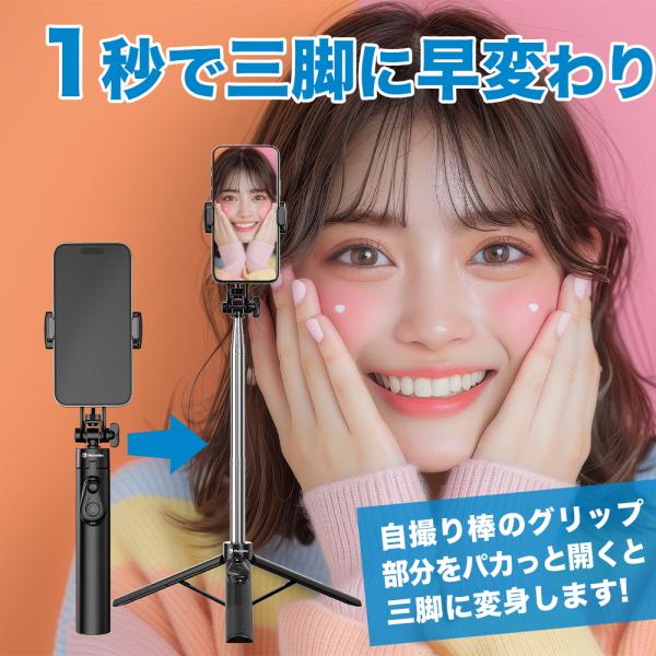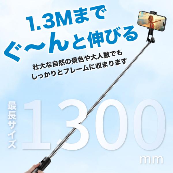 自撮り棒 iphone セルカ棒 bluetooth 三脚付き スマホスタンド 長い 軽量 iphone16 アンドロイド GoPro カメラ対応 ワイヤレス 130cm 7段階伸縮 リモコン