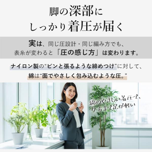 表糸にオーガニックコットンを使用した日本製着圧ソックスです。