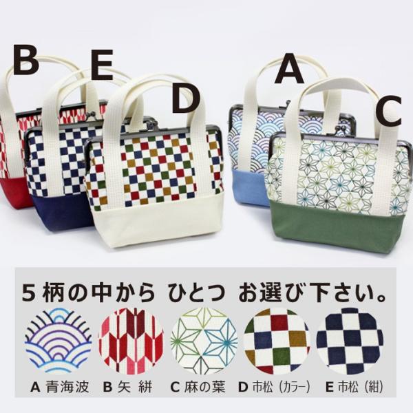 Aから順に青海波 矢餅 麻の葉 市松カラー 市松紺の人気和柄を揃えました。女性男性そして海外の方にぴったりな5.5寸がま口手提です。