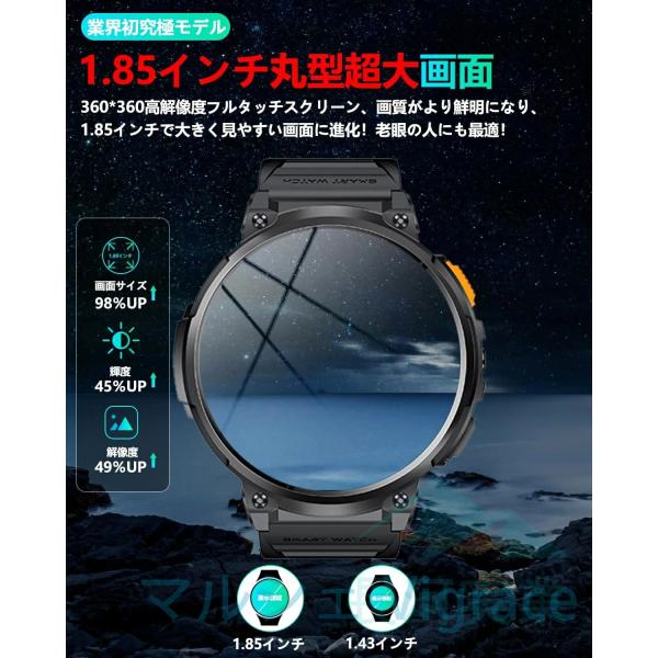 スマートウォッチ【2026究極新設計 1.85インチ超大画面 丸型 軍