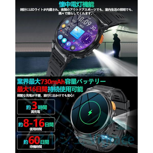 スマートウォッチ【2026究極新設計 1.85インチ超大画面 丸型 軍用規格 懐中電灯】腕時計 メンズ 老眼の人に最適 730超長持ちバッテリー iPhone アンドロイド対応