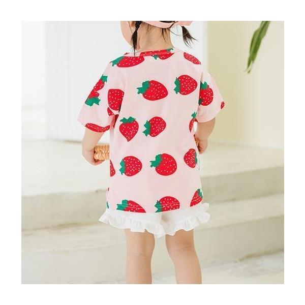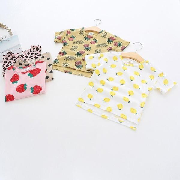 半袖Tシャツ カットソー 子供服 キッズ ベビー 男の子 女の子 ラウンドネック イチゴ レモン ヒョウ パイナップル ドット