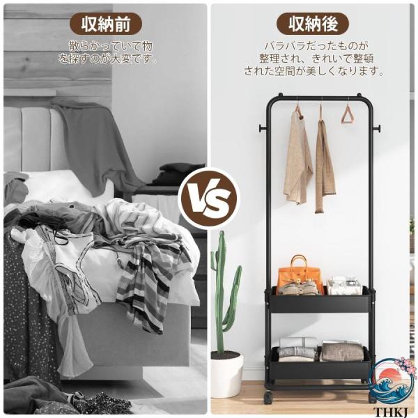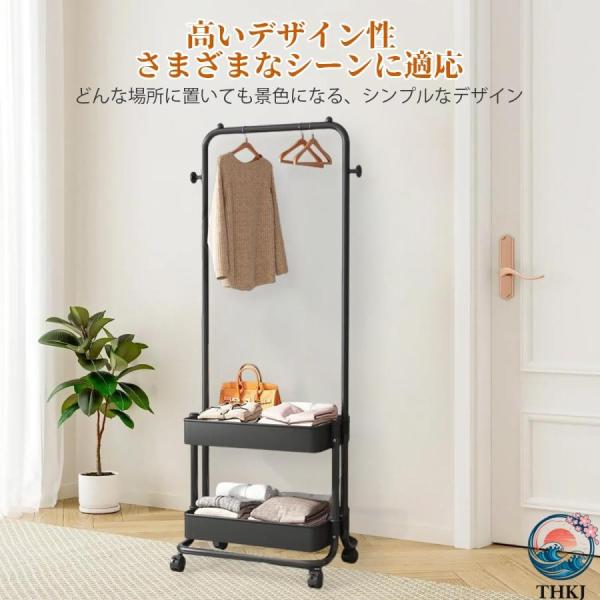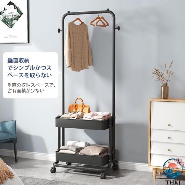 ハンガーラック トローリーハンガー スリム キャスター付き バスケット2つ付き 衣類ラック 洋服掛け 組立簡単 360度回転キャスター付き 省スペース 大容量 頑丈