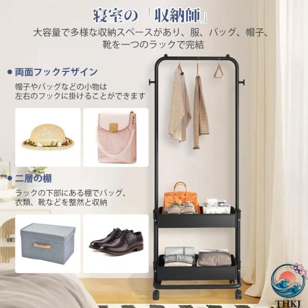 【2段収納】毎日の洋服収納に対応する洋服ラック。 2層の棚には、収納ボックス、靴、ブーツ、バスケットとバッグ、および傘を配置できます。 物を片付けるのに役立ち、家をきれいにします。