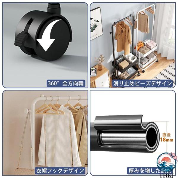 【360度回転キャスター付き】鉄製の頑丈なハンガーラック、太めのパイプでしっかり安定しています。冬物の重たい服をいっぱい掛けでも揺れない、ゴム製カバー付属しておりますから、安定感はもちろん、床板に損害や擦り傷をもたらしません。