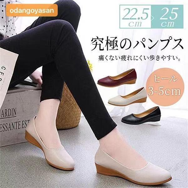 パンプス 痛くな ウェッジソール レディース シューズ ローヒール 美脚 走れる アーモンドトゥ スムース 通勤 甲高 幅広 究極のパンプス