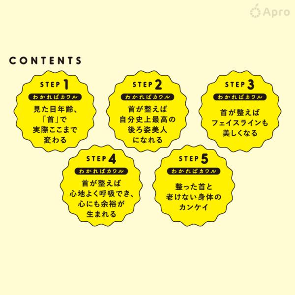 本書には、首まわりを整えるために大切な3つのチェックと1分でできるワークを8つ掲載しています。