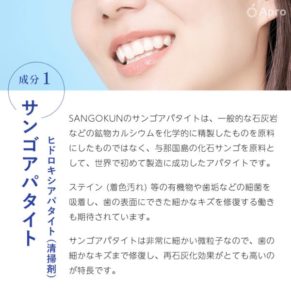 天然のサンゴ由来なので、カルシウムの他にマグネシウムも含まれていて、歯に付着する様々な汚れに広く対応することが期待できます。