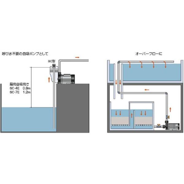 一般的なオーバーフロー方式(揚程1〜1.5m)を想定しています。
