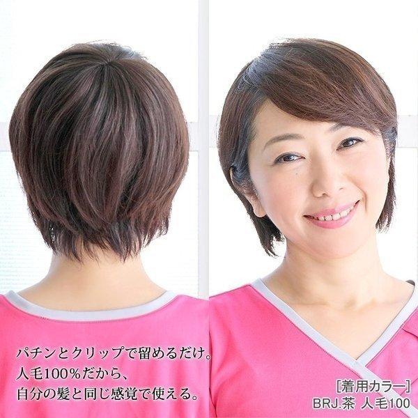 前髪 ミディアム 抗がん剤 人毛100 人毛ウィッグ 部分 頭頂部