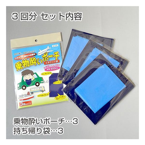 ドライブ・旅行の必需品 乗物酔いポーチ エチケット袋 (3回分) 嘔吐 嘔吐袋 嘔吐物処理 嘔吐用エチケット袋 乗り物酔い 携帯用 袋 つわり